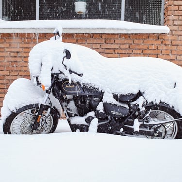 A city covered in snow.